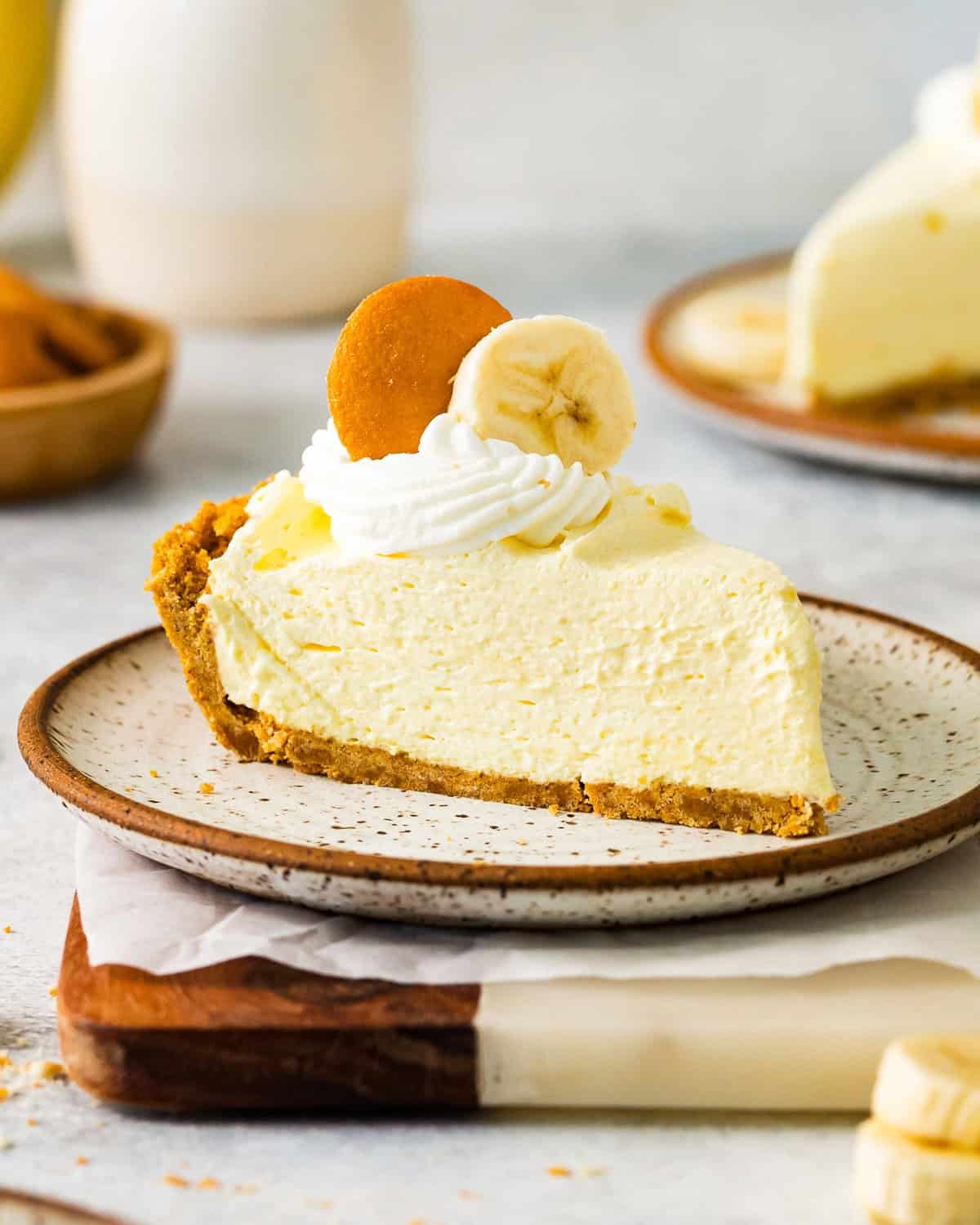 Garnish and Serve: Garnish your banana pudding pie with whipped cream, sliced banana, and Nilla Wafers. Slice and enjoy!